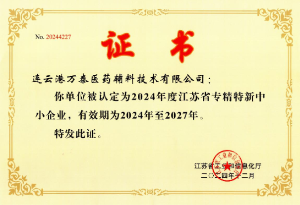 連云港萬(wàn)泰榮獲江蘇省專精特新中小企業(yè)
